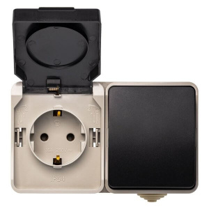 Блок розетка выключатель, IP54 Сатурн (SBE-04w-16-SWS)